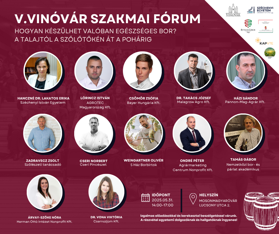 A Széchenyi István Egyetem Mezőgazdaság-és Élelmiszertudományi Kar védnöksége alatt szervezett rendezvény a régió legnagyobb és legszínesebb boros eseménye.